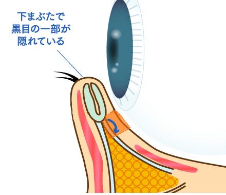 下まぶたに隠れていた白目・黒目が露出し、パッチリとした大きな目元になります。