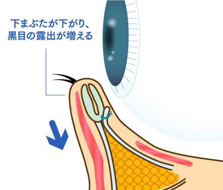 「経膜的アプローチ」から、下まぶたを引き下げる処置を行います。