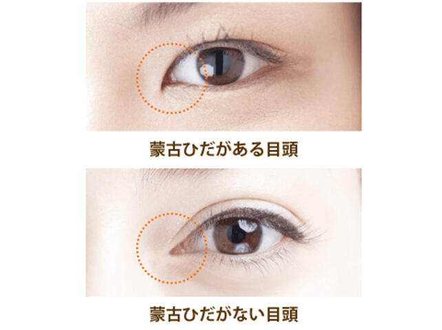 蒙古ひだは、目頭部分の白目を覆うようにある皮膚のことで、日本人に多くみられる目の形質です。特に、一重や奥二重の方に多く、目が小さく見えたり、離れ目に見られる原因となります。