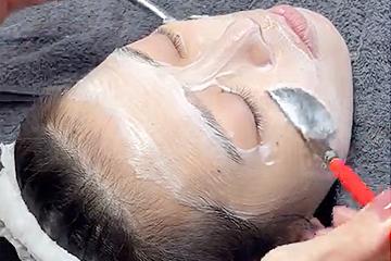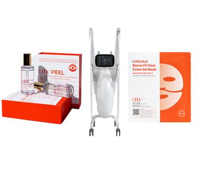 ボルニューマーという高周波機器を照射してリフトアップをしたあとに、ララピールで肌の角質をしっかり除去。最後にマイクロバイオフォーム(乳酸菌)+セラミド成分+ツボクサエキスを配合した「ララマスク」で肌の鎮静と有効成分の浸透をおこないます。