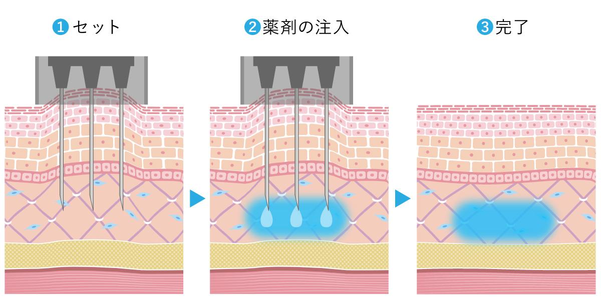 肌に直接薬剤を注入するため、薬剤の効果が出やすいのが特徴。