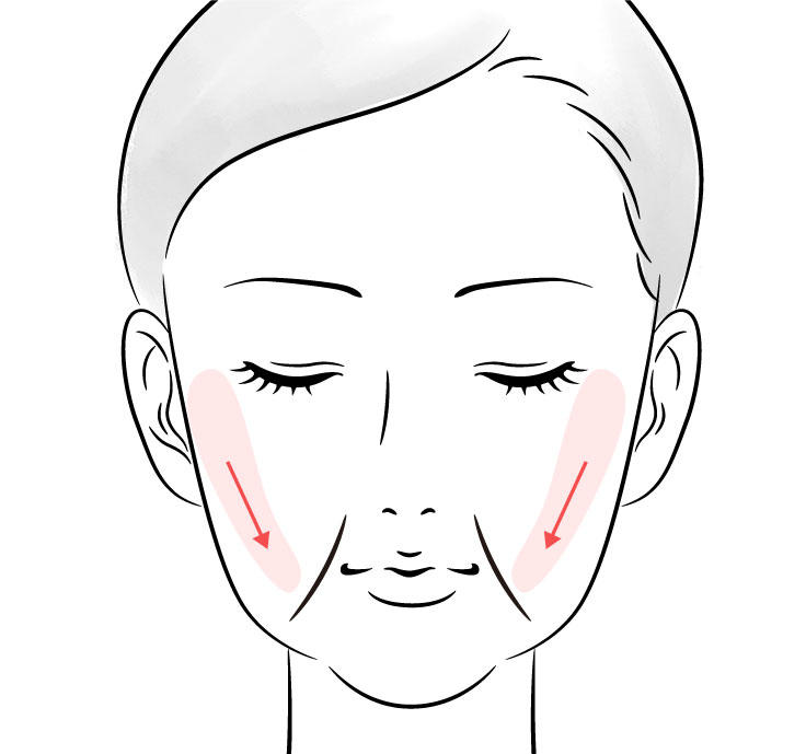 口腔内から上の奥歯のところを約0.5~1cmほど切開し、ピンセットで脂肪を除去。皮膚表面に傷が出ることはありません。