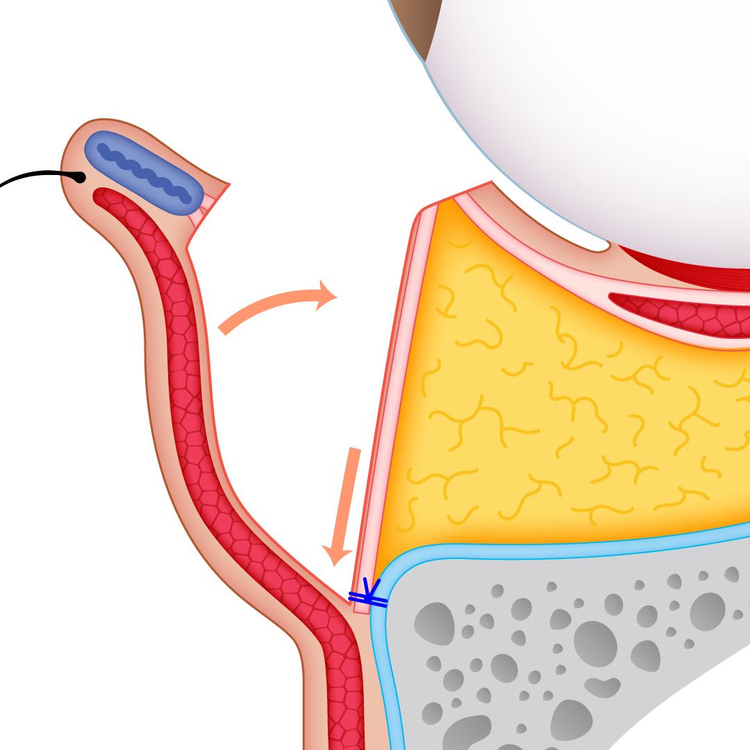 残った脂肪を頬骨骨膜にしっかり固定し、後戻りを予防します(隔膜リペア)。
