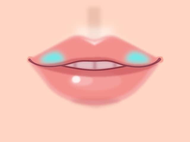 上唇の赤唇の左右の下の部分にヒアルロン酸を注入します。
