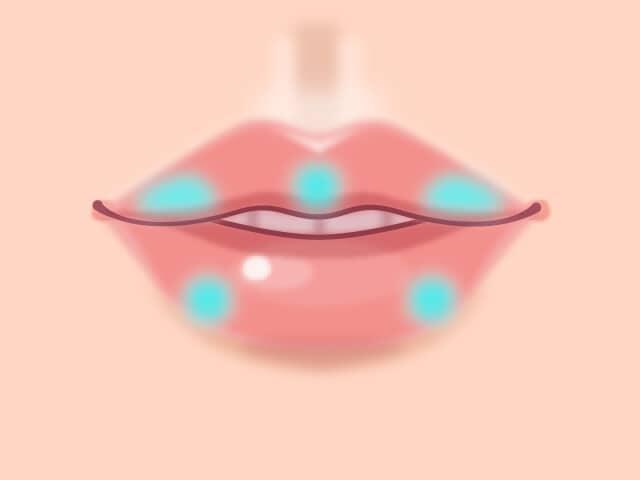 赤唇の上下左右の口角部分や中央の上口唇結節、または全体にヒアルロン酸を注入します。こうすることでキューピッドボウと呼ばれる上唇の輪郭が強調されM字のラインが形成されます。