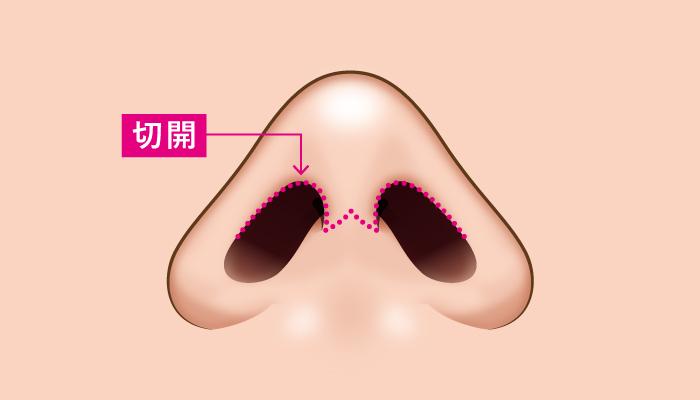 麻酔をして鼻柱部分を切開します。
