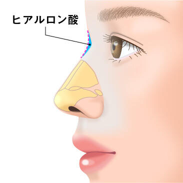 一般的に鼻を高くするには、鼻の付け根から鼻尖手前までに適量の「ヒアルロン酸」を注入します。
