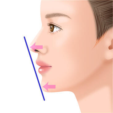 一般的には、鼻先と下アゴを直線で結んで、横から見たラインをEライン(エステティックライン)と呼び、美しい横顔の基準として使われたりします。