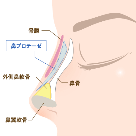 骨膜がプロテーゼと鼻骨を固定する役割を果たすため、施術後にプロテーゼがズレるといったトラブルを軽減することができます。