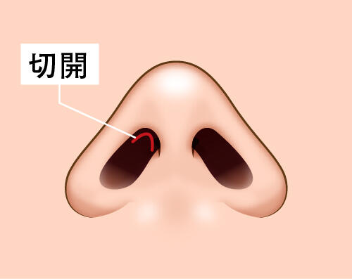 確認後は麻酔をして、鼻の穴の中を切開します。