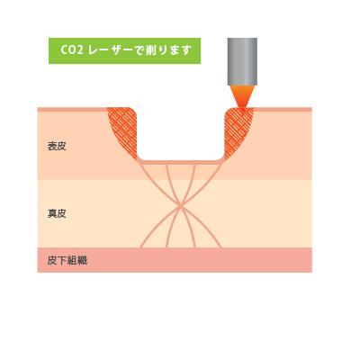 ニキビ跡の縁をCO2レーザーで削っていきます。