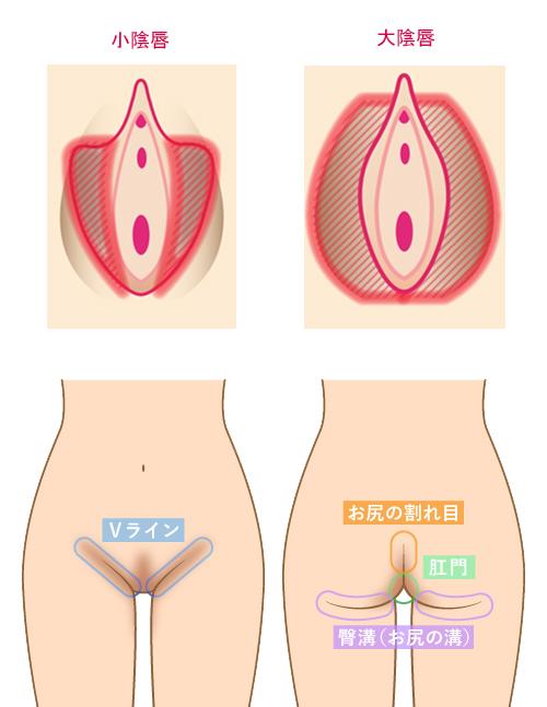 インティマレーザーを使用した黒ずみ治療の適応部位は以下の通りです。