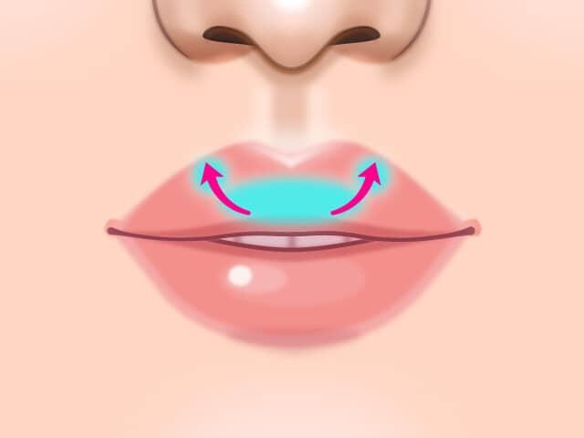 赤唇の上下左右の口角部分や中央の上口唇結節、または全体にヒアルロン酸を注入します。こうすることでキューピッドボウと呼ばれる上唇の輪郭が強調されM字のラインが形成されます。