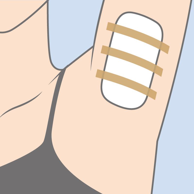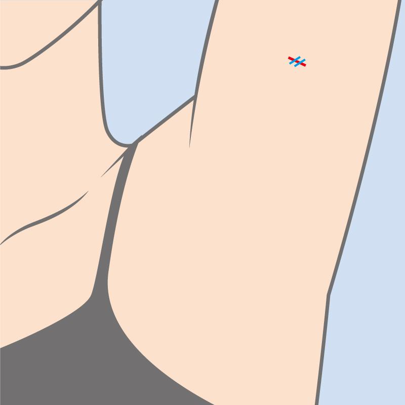 局所麻酔を打った後、5mm程度二の腕の内側を切開します。麻酔を打つときにチクッとした痛みがありますが、それ以降は痛みを感じなくなりますのでご安心ください。