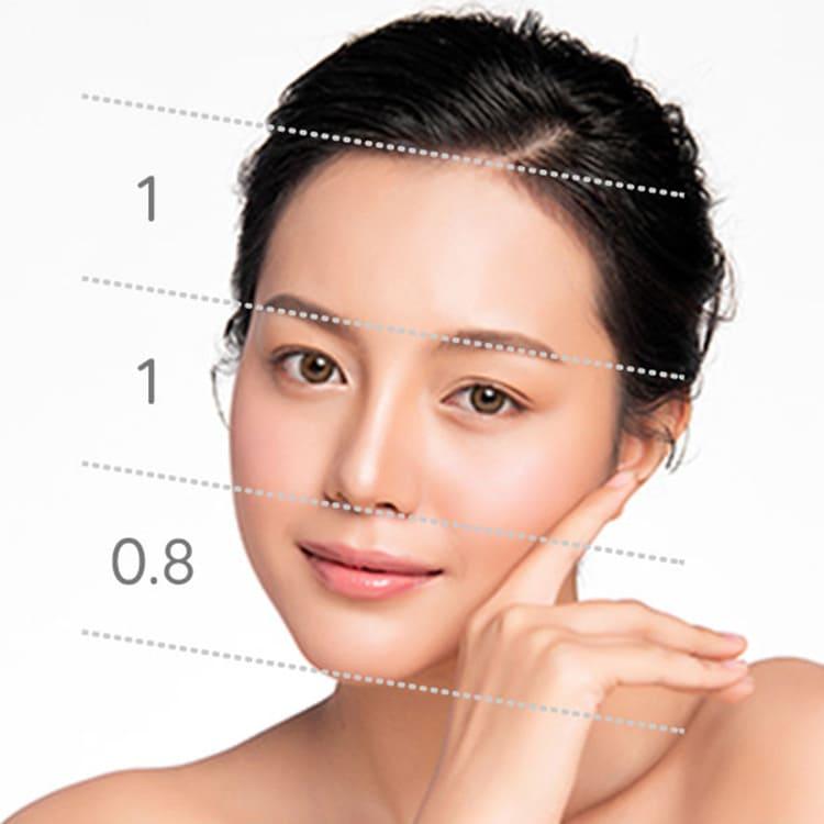 実は、生え際から眉までの上顔面と眉から鼻下までの中顔面、鼻下からアゴまでの下顔面の比率が、1:1:0.8がバランスが良いとされています。