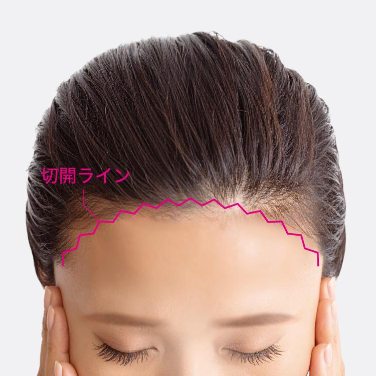 「額縮小」は、額の余剰皮膚を切除して骨膜に固定し、シワの無い美しい小さなおでこにする施術です。