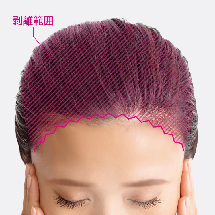 こめかみと目元を近づけることが出来るので、さらなる額縮小効果があり、特に生え際がM字型の方に有効です。