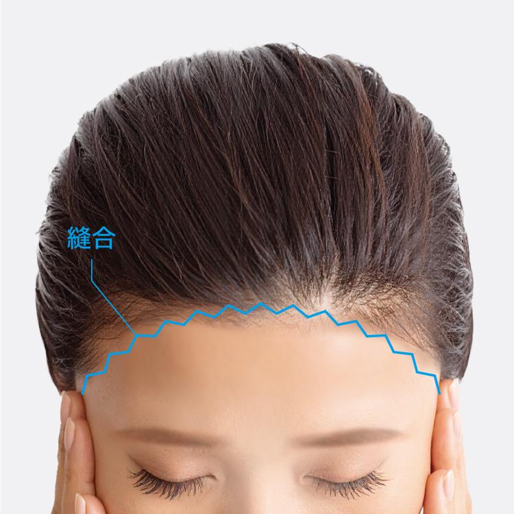 生え際を前方へ移動し、糸で丁寧に縫合します。施術1~2週間後に抜糸をし、施術完了です。