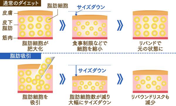 脂肪吸引では、カニューレという細い管で皮下脂肪を吸引し、脂肪細胞の絶対数を減らすため、リバンドのない顔やせが実現します。また、直接脂肪を吸引するため、脂肪溶解剤や痩身マシンより治療回数が少なく、確実性の高い効果が期待できます。