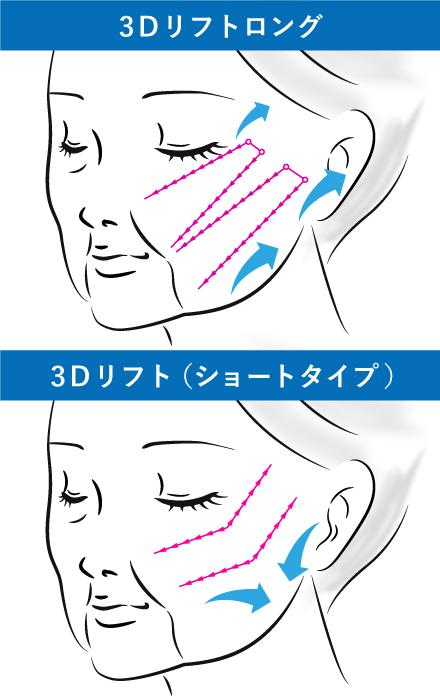 『3Dリフトロング』は、従来タイプの『3Dリフト』よりも糸が2倍の長さになったフェザーリフトです。