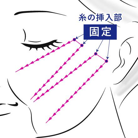 施術方法は、皮膚に微細な穴を開け、専用のニードルを使って糸を挿入していきます。空けた穴から引き上げる方向に向かって糸を挿入し、医師のコントロールによって糸の位置を調整していきます。