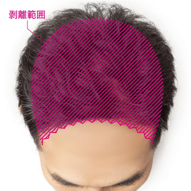 こめかみと目元を近づけることが出来るので、さらなる生え際前進効果があり、特に生え際がM字型の方に有効です。