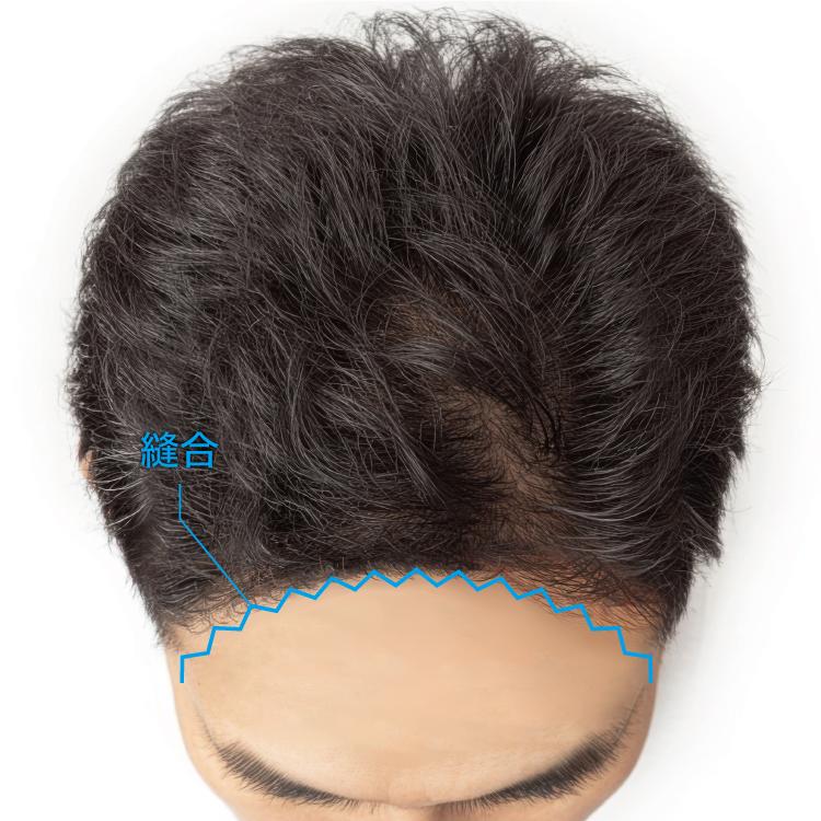 生え際を前方へ移動し、糸で丁寧に縫合します。施術1~2週間後に抜糸をし、施術完了です。