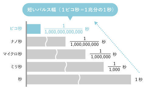 しかし近年、その1000分の1の「ピコ秒(1兆分の1秒)」という圧倒的に照射速度の速いピコ秒レーザーが登場しました。「ピコシュア」はそのピコ秒レーザーの照射マシンです。